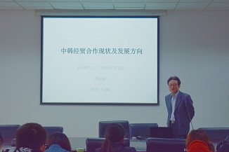 11月3日下午,南京财经大学客座教授禹辰勋在我校仙林校区德经楼308会议室作了题为“中韩经贸合作现状及发展方向”的讲座。国际经贸学院研究生聆听了此次讲座。