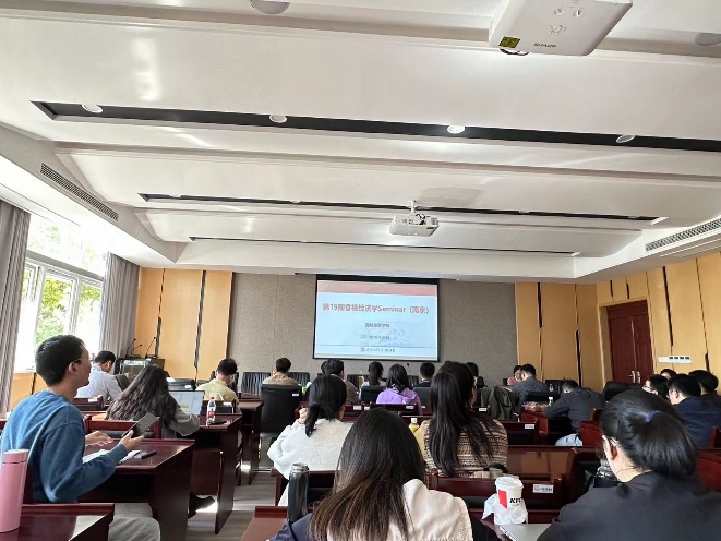 2023年10月20日下午,第19期香樟经济学Seminar(南京)在南京财经大学仙林校区德经楼308会议室举行,此次研讨会由南京财经大学国际经贸学院院长余泳泽教授致辞,南京财经大学国际经贸学院副院长徐圆教授主持。六位博士演讲人、我院点评老师和我院硕士生、博士生参加此次活动。