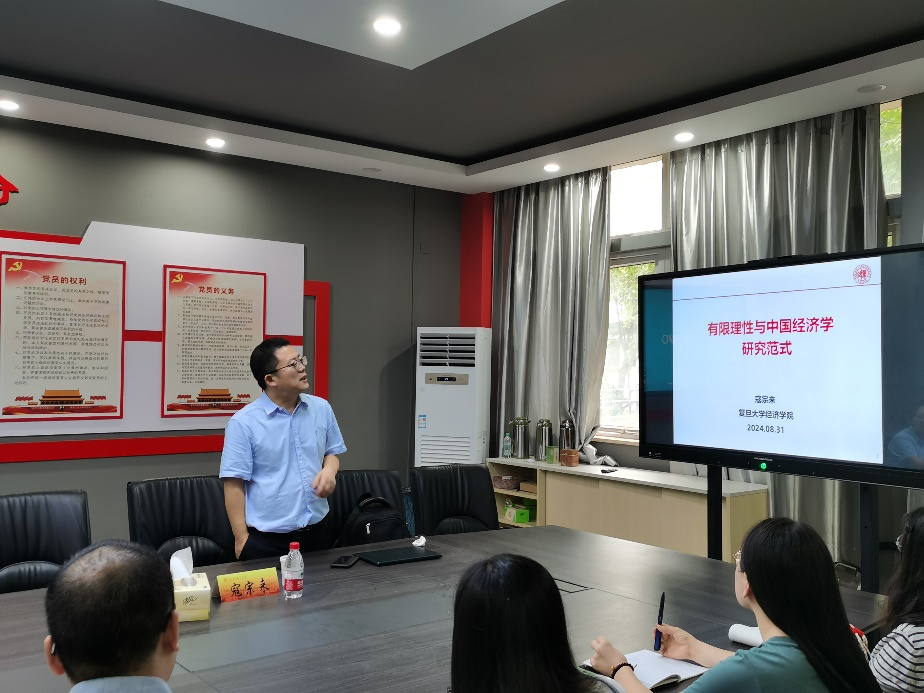 8月31日下午,复旦大学经济学院教授、副院长寇宗来老师应邀到访南京财经大学国际经贸学院,在德经楼206会议室开展了一场题为“有限理性与中国经济学研究范式”的专题讲座,我院教师和部分在校博士研究生、硕士研究生参加了讲座和交流活动。