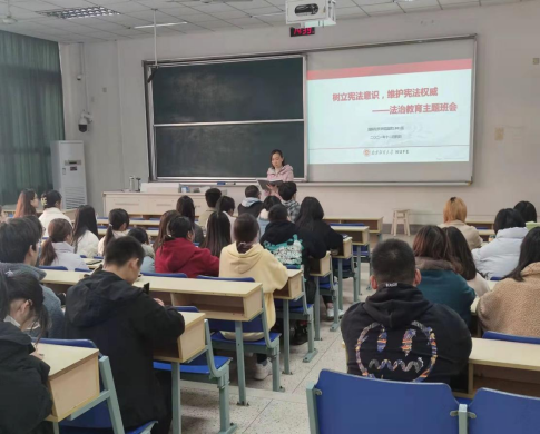 为深入学习贯彻习近平法治思想,进一步普及宪法知识,弘扬宪法精神,2021年12月3日,国际经贸学院国贸1901班在德经楼105教室召开“树立宪法意识,维护宪法权威”主题班会。
