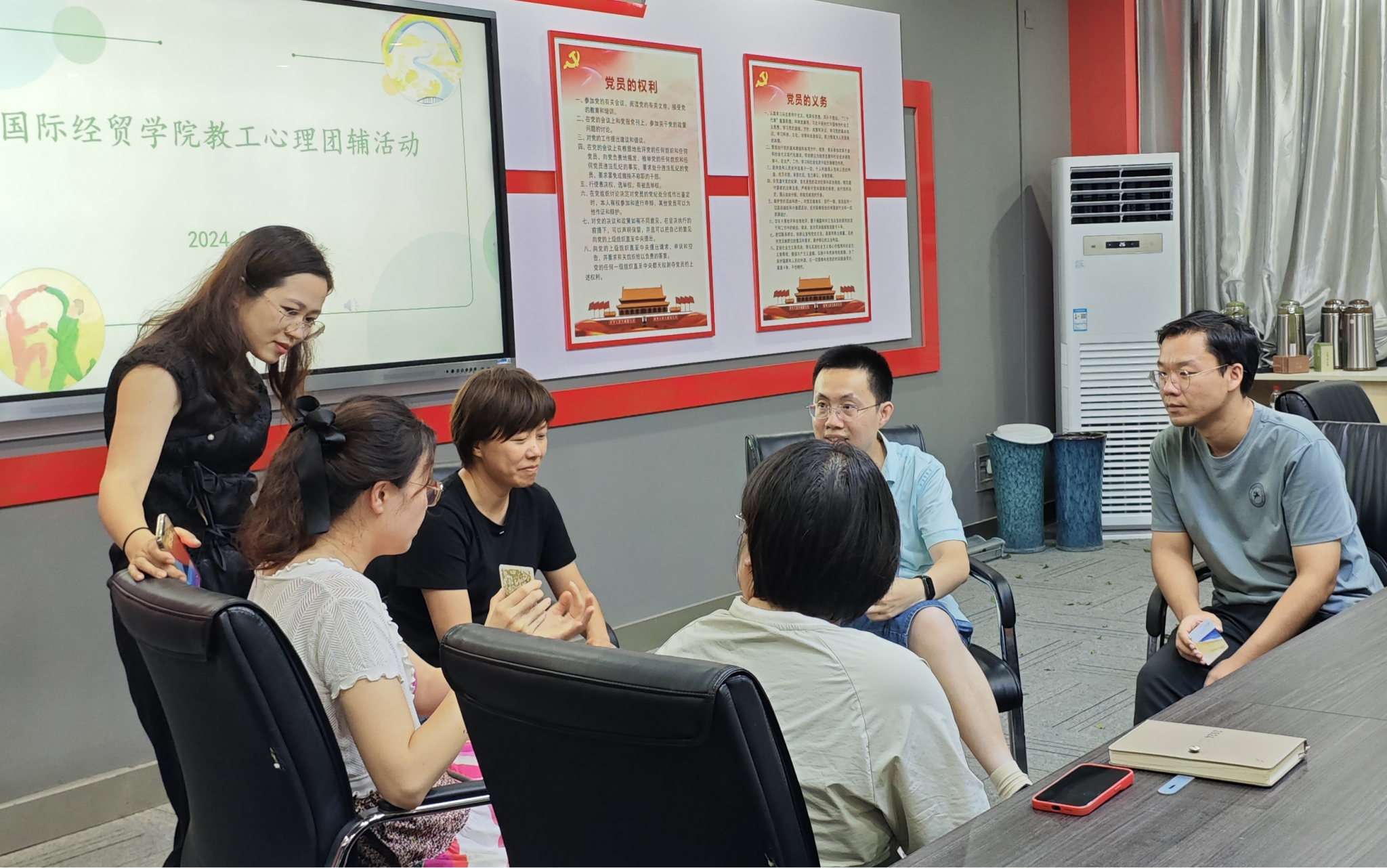 9月18日晚,国际经贸学院在德经楼206会议室为教工们组织了一场暖心有趣的心理团辅活动。活动以“OH卡牌——探索内心之旅”为主题,邀请心理健康教育中心李喆君老师全程辅导,赢得了教工们的积极参与。