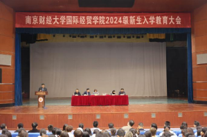 10月22日,国际经贸学院2024级新生入学教育大会在仙林校区大学生活动中心一楼礼堂隆重举行。全体院领导、教师代表、校友代表、新生辅导员及2024级新生参加了此次大会。大会由院党委副书记周进进主持。