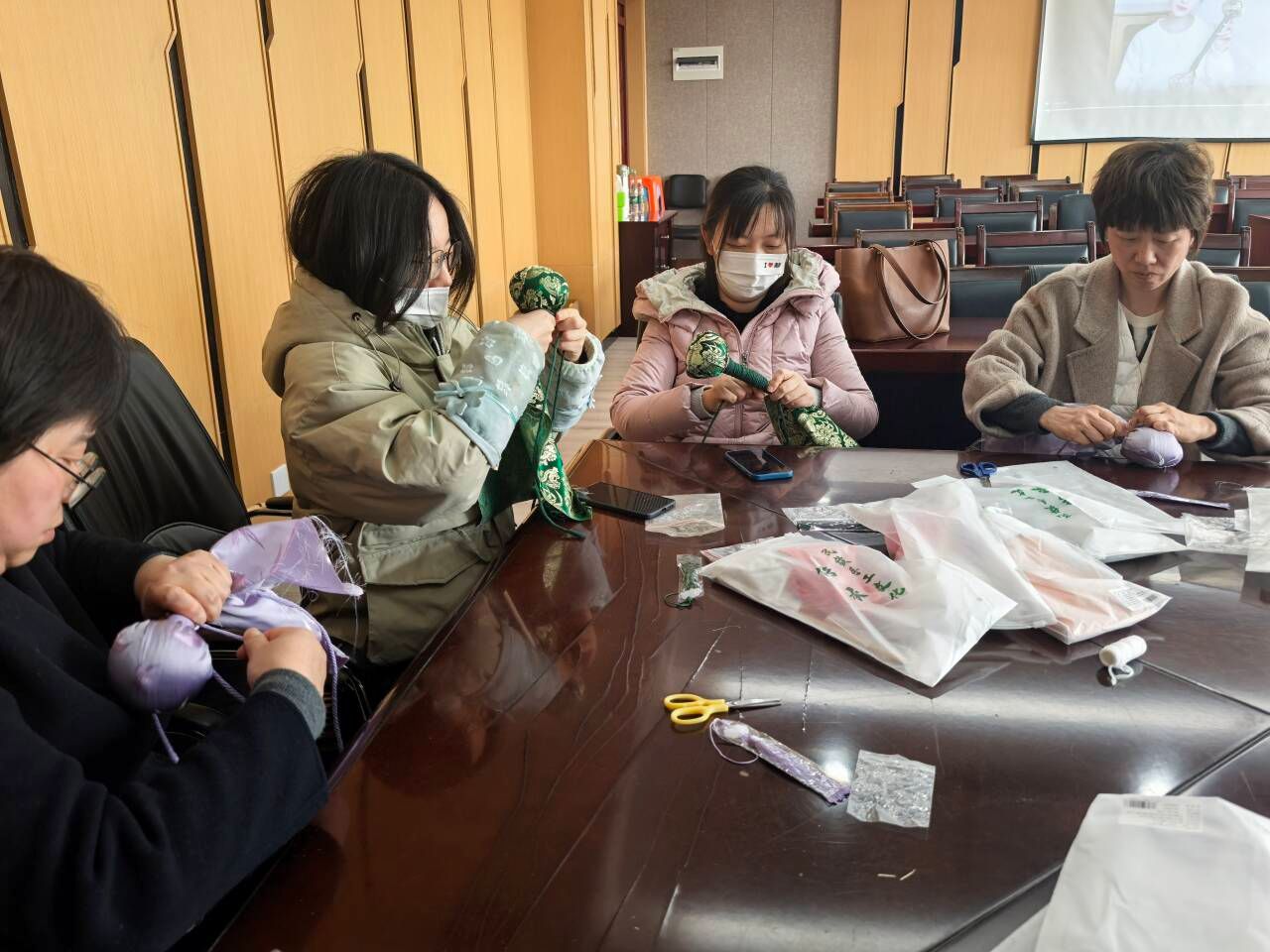 仲春三月,草长莺飞。为弘扬传统文化,丰富女教职工的健康生活,2025年3月19日下午,国际经贸学院的女教工们济济一堂,开展艾草锤手工制作活动。