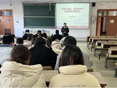 12月3日下午3点,国际经贸学院于博远楼212开展了面向2022届毕业生的“你我共成长,建功新时代”就业指导主题班会,会议由研究生辅导员张东霞老师主持。