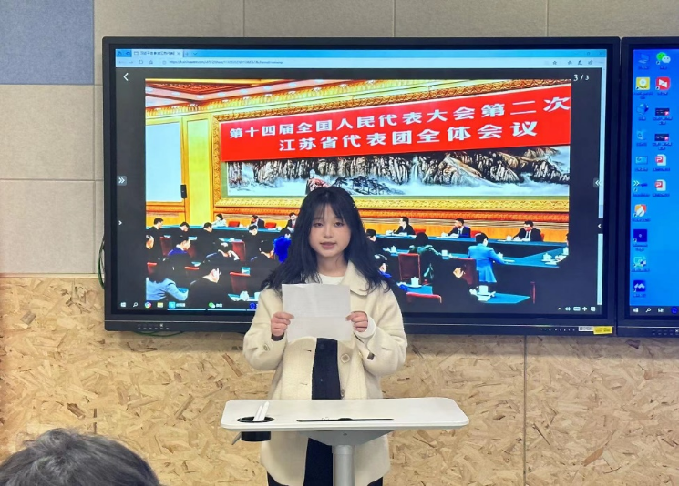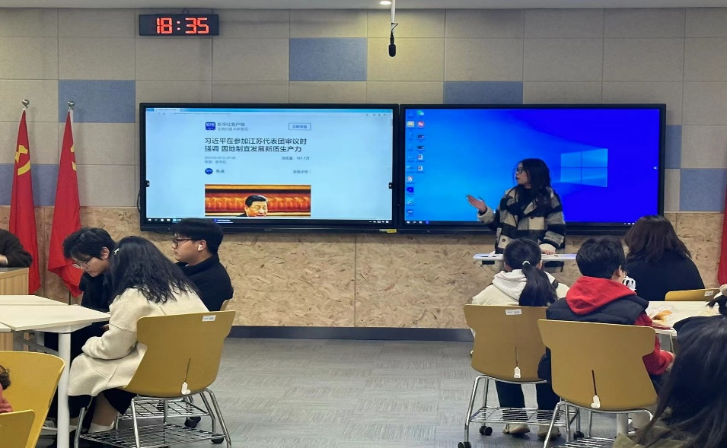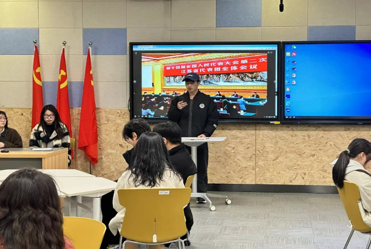会议以共学习近平总书记参加江苏代表团审议的重要讲话引入,从“高质量发展”到“新质生产力”,从“深化改革”到“扩大高水平对外开放”随着对两会关键词的深入学习理解,参会同学围绕着自己专业开了积极地讨论并发表自己的观点。国贸2301班班长张洋在讨论中说到:“对于两会的关注让我更加理解新发展理念,尤其是创新发展理念。在新时代背景下,国际贸易需要不断创新贸易方式、拓展贸易领域、深化贸易合作,以适应全球经济发展的趋势和要求。身为国际经济与贸易专业的学生我们更应从自身做起,更加注重创新思维和实践能力的培养。