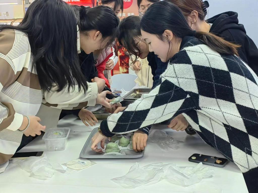 3月31日下午,我院在中苑食堂二楼举行“风气清明,青团飘香”主题活动。“古时有寒食禁火祭墓,清明新火踏青的习俗,前者怀旧悼亡,后者求新护生,两者在文化内涵上密切相连,在时间上也紧密相连,寒食第三日即清明...”活动主持人娓娓道来寒食节的来由,一则则生动有趣的典故引人入胜。伴随着主持人的讲解,同学们开始学习青团的制作过程。有的负责和面,有的负责调馅,有的负责包制,食堂里草头汁水清香四溢,蒸好的青团清甜甘香,软糯可口。翟羽佳同学感叹到“介子推忠义廉洁的气节仿佛伴随着艾叶香气浸润在春日的校园中。“此外同学们还用画笔与颜料手绘了青团小盒,将春日烂漫与清明雨雾相结合,呈现出别样的烟雨江南意境。独享不如共享,同学们纷纷将做好的青团包上精美的包装,送到食堂阿姨、宿管阿姨们的手中,共同品尝这一美味。