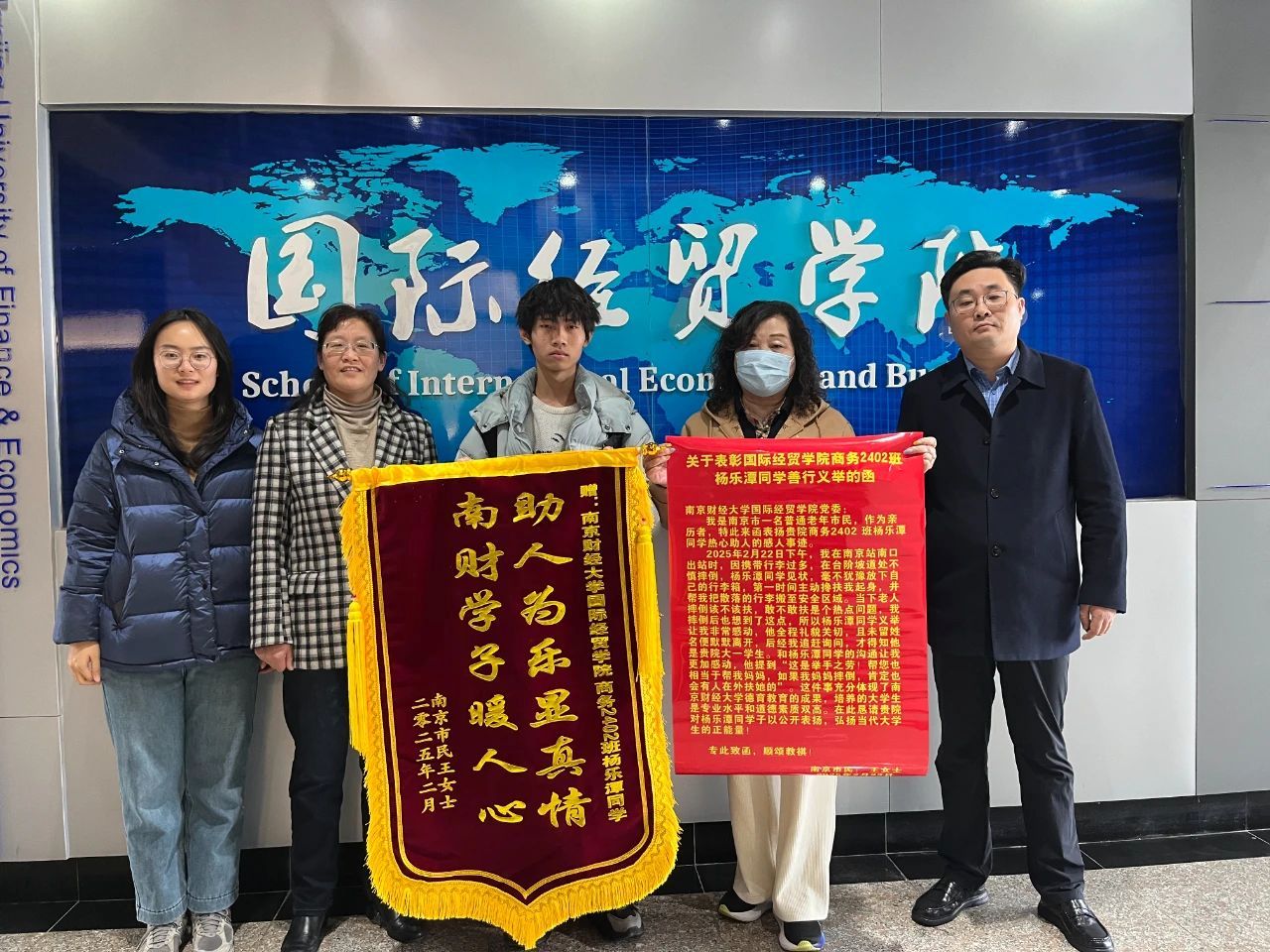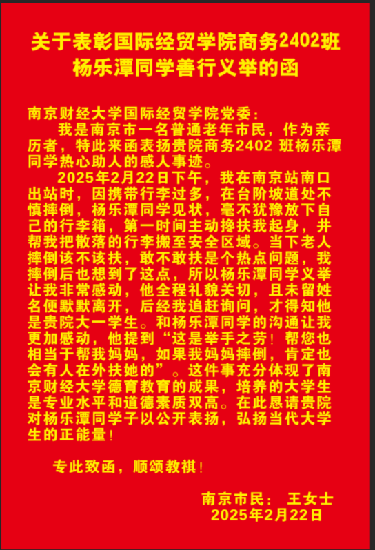 在追赶询问下才得知他是南京财经大学国际经贸学院的大一学生