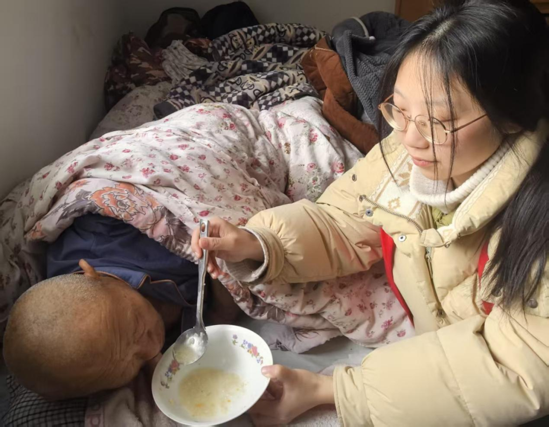 李逸然于2025年2月15日至2025年2月19日在江苏省如皋市长江镇田桥社区为老人提供生活照料志愿服务。其中85岁的张爷爷长期卧床,动作不便,李逸然便主动给张爷爷喂食并帮助他做简单的锻炼。他虽身体不佳但乐观坚强,和她分享过去的点点滴滴。看到张爷爷的笑容,李逸然深感服务的价值,也坚定继续做志愿,让社会充满爱。