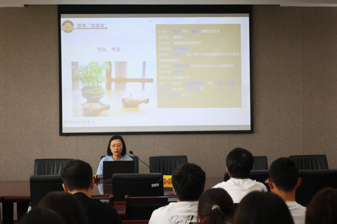 为全面提升学生干部新闻宣传素养,强化学院新闻宣传工作效能,5月19日晚,国际经贸学院于德经楼308会议室召开学生骨干新闻宣传工作专题培训会。校党委宣传部施卫娟老师担任主讲嘉宾,50余名学生干部参加培训,现场学习氛围热烈,会议由学院团委老师邓盛佳主持。