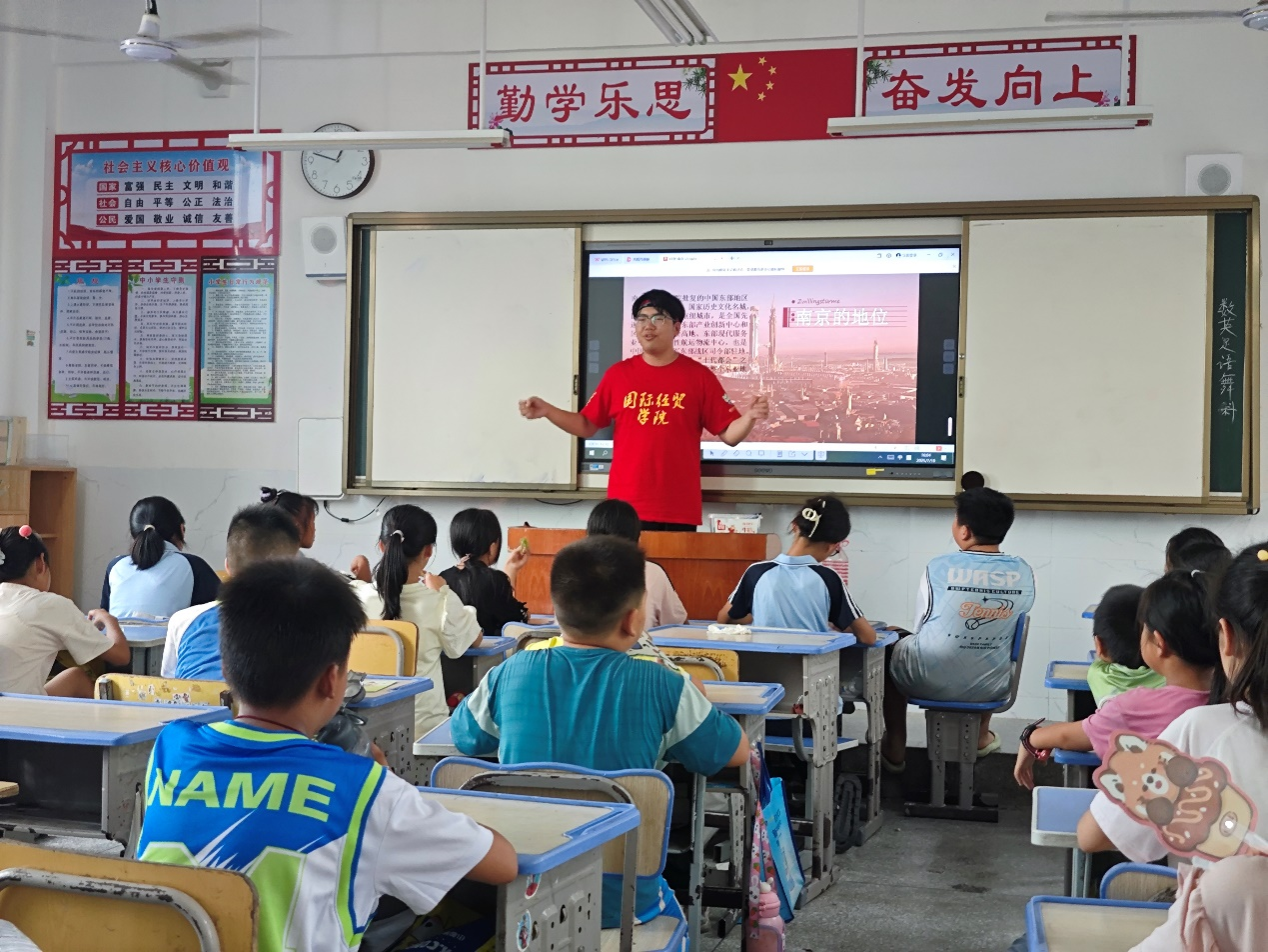 2025年盛夏,广西壮族自治区桂林市灵川县海洋乡中心小学的教室里,一场跨越千里的红色对话正在上演。南京财经大学国际经贸学院“漓漓圆上草”支教队以“红色贸易史”与“党史学习教育”为主题,为大山里的孩子架起连接南京与桂林的红色文化桥梁。这支连续8年深耕灵川的支教队伍,用“圆”的团结精神与“草”的坚韧品格,在桂北山区播撒下红色的火种,更在孩子们心中种下了通往山外的精神之梯。