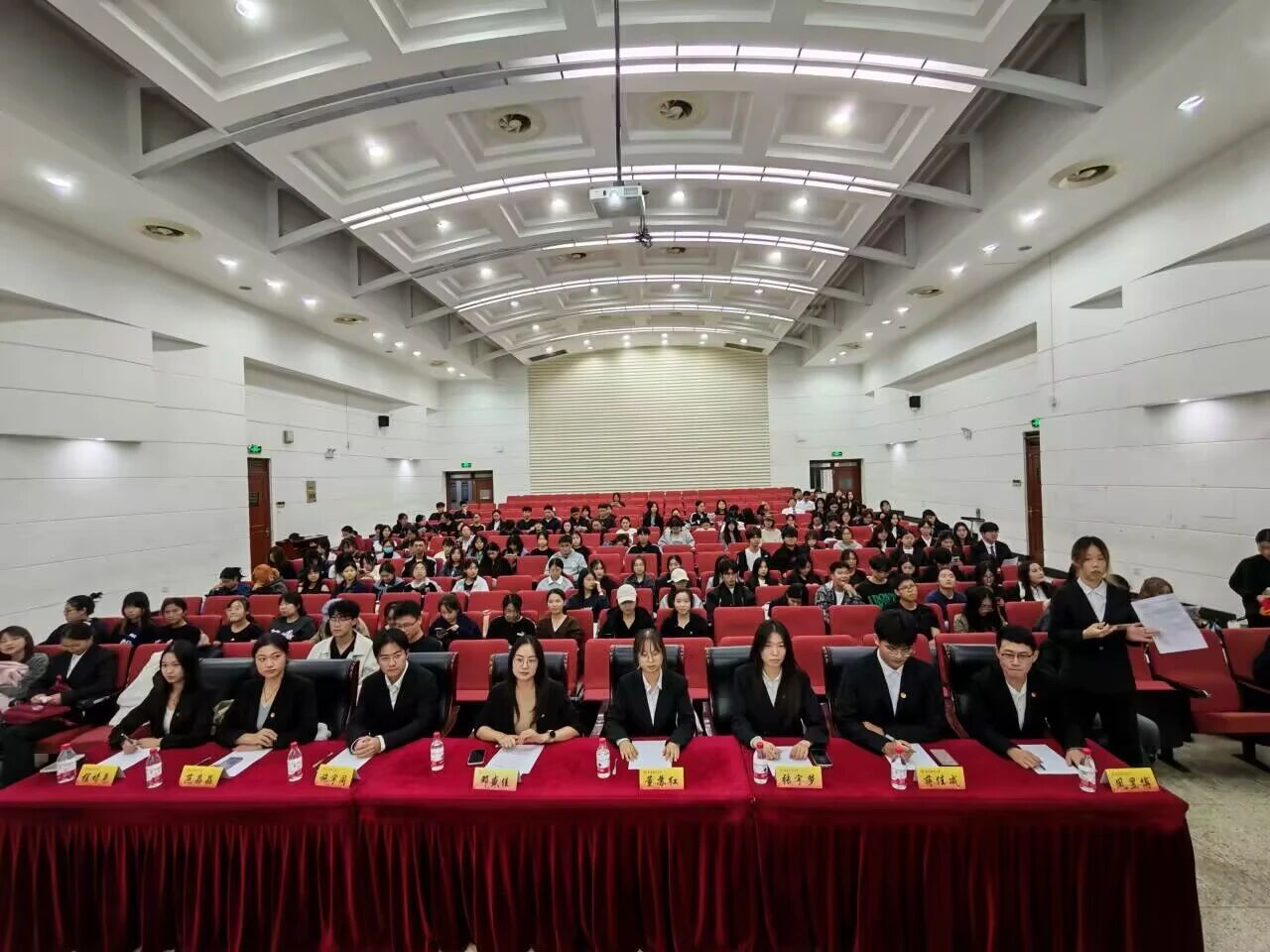 雏凤清于老凤声,新程今启聚群英,2025年10月14日晚,南京财经大学仙林校区国际经贸学院第二十三届学生会成立大会在德经楼二楼报告厅召开。学院团委邓盛佳老师出席本次会议,分团委副书记凤昱博、范晶晶、张宇梦、蒋佳成,学生会主席程婧尧、董苏红、施宇同与全体学生会成员参会。此次成立大会由综合事务中心部长周添翼主持。