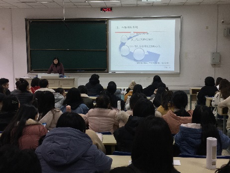 1127日下午14点,国际经贸学院在仙林校区德经楼Z-112教室成功举办南京市栖霞区青年大学生就业见习政策宣讲会,邀请了南京市栖霞区人社局职培科宣讲员董蕾娜等5位宣讲员、国际经贸学院75名应届毕业生代表参加宣讲会。本次会议由学院2017级学生辅导员孙绪华老师主持。
