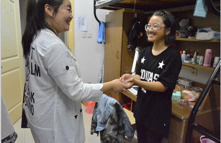 2016级辅导员张东霞老师和寻访月饼的学生一同走进新生宿舍,与新生们品月饼、聊军训话中秋。在看到老师和月饼时,张同学紧张地说,“真的很感谢老师和学姐学长们过来送月饼,冰皮月饼真的是好吃到哭,就和在家吃的感觉一样!”