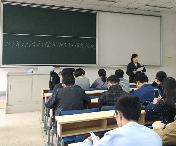 为贯彻落实《中华人民共和国兵役法》和各级兵役机关鼓励大学生征兵工作的有关精神,认真做好我院在校生兵役登记和2017年应征入伍工作,鼓励更多优秀大学生投身军营,4月25日,我院召开2017年在校大学生兵役登记和应征报名动员会,会议由2013级辅导员朱娟芳老师主持。