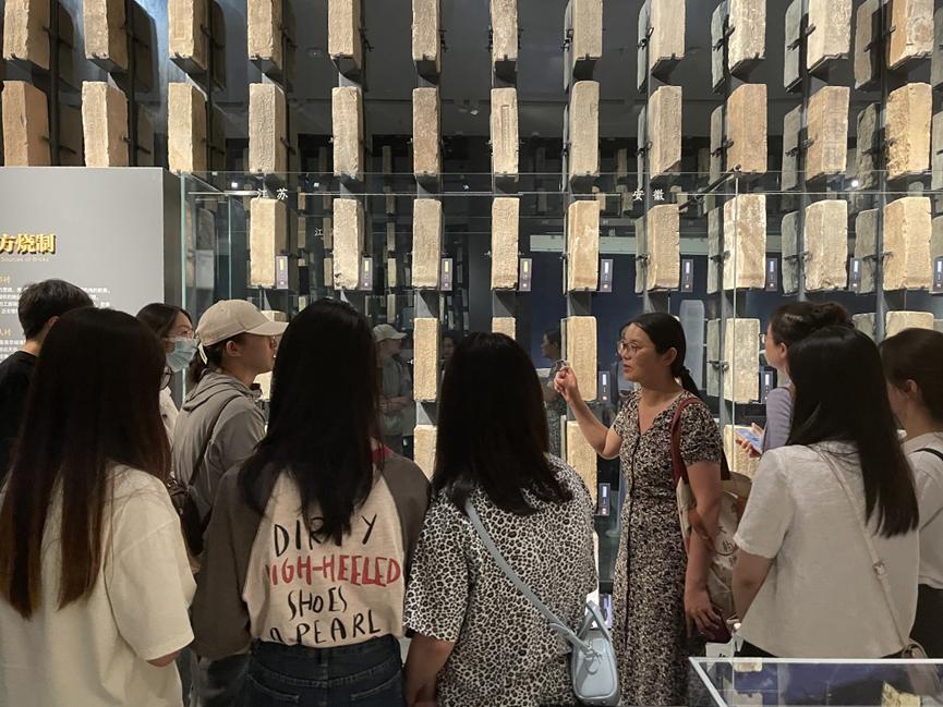 在观廉悟廉环节,国际经贸学院的学生党支部书记们带领毕业生党员赴南京城墙博物馆开启党课研学,感悟城砖精神,汲取廉政智慧。在“旷世城垣”的展厅内,七百多块城砖构成的城砖列阵,严肃震撼地排列在展厅内,向每一位党员诠释着责任的内涵。支部书记张朋朋老师向大家讲述到:“栉风沐雨六百多年的明城墙之所以雄伟坚固,与每块城砖背后的勒名以及当时严格的责任制密不可分。这种精确到人的‘物勒工名’制度,有效加强了制砖工序的管理和监督,并很大程度上抑制了贪污腐败。”通过沉浸式的参观学习,毕业生党员们深切感受到了中国廉洁文化的源远流长和博大精深,更加深刻地领会到必须要加强对权利运行的制约和监督,“把权力关进制度的笼子里”。