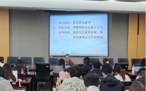 2023年4月22日晚,党校常务副校长(正处职)、党委组织部副部长徐刚在仙林校区德经楼308会议室为国际经贸学院第十九期“党的发展对象”讲授专题党课。徐老师以“坚定文化自信”与“‘中国’与《史记》里的‘中国故事’”为主题,绘声绘色地为所有参训同学讲述中华优秀文化的博大精深与源远流长。