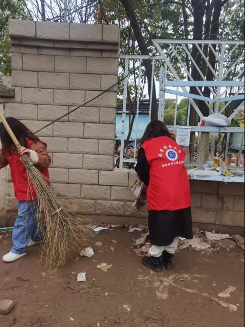 来到学校西门外卖存放点,志愿者们首先对外卖货架沿线的垃圾杂物进行清理。他们分工合作,有的捡拾货架边和杂草丛中的塑料包装袋、果皮;有的手拿扫把清扫草地上的垃圾;有的拿抹布清理货架上的“卫生死角”。大家不怕脏、不怕累,尽管下着雨,现场仍然是一片热火朝天的劳动景象。在大家的相互配合下,不到一个小时,活动现场的垃圾被清理得整洁清爽。