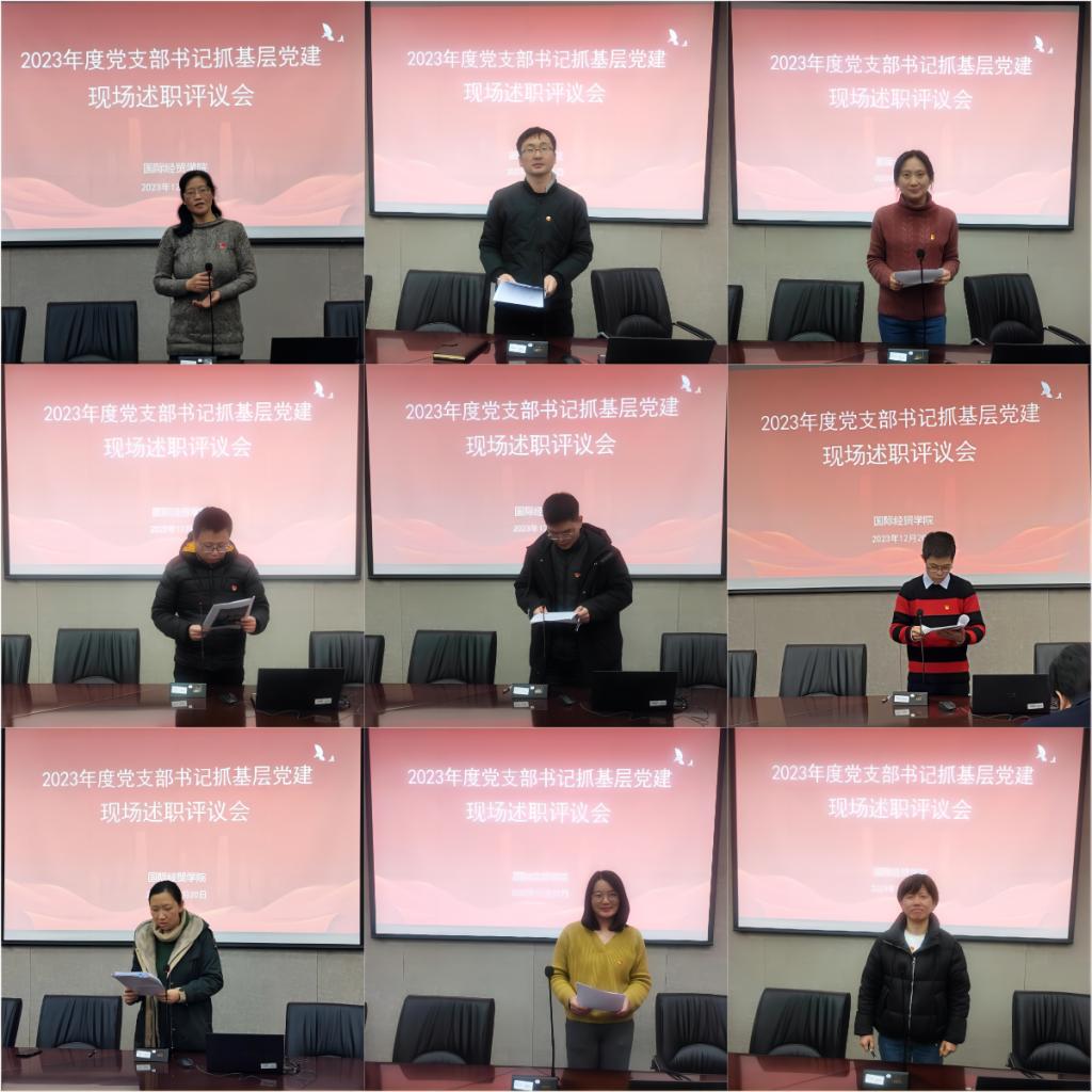 2023年12月20日下午,国际经贸学院党支部书记抓基层党建现场述职评议会在仙林校区德经楼308会议室举行。学院党委委员、全体党员、党外代表参加本次评议会,会议由学院党委书记周亚芳主持。