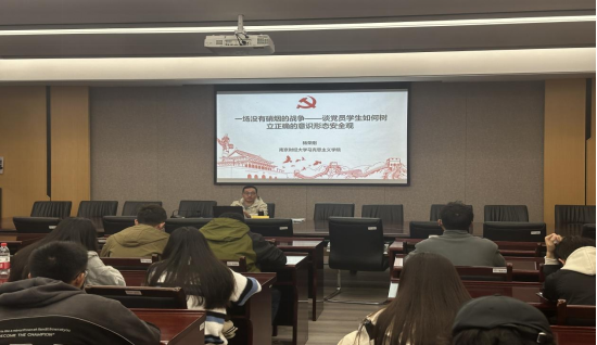 为深入领会党的二十届三中全会精神,加强青年学生对中国式现代化的认识与认同感,国际经贸学院于10月26日在德经楼308会议室开展了题为“一场没有硝烟的战争—谈党员学生如何树立正确的意识形态安全观”的专题讲座。本次党课邀请马克思主义学院教研室主任杨荣刚副教授作为主讲人,为在场的青年学生带来了一场深刻的思想教育和精神洗礼。