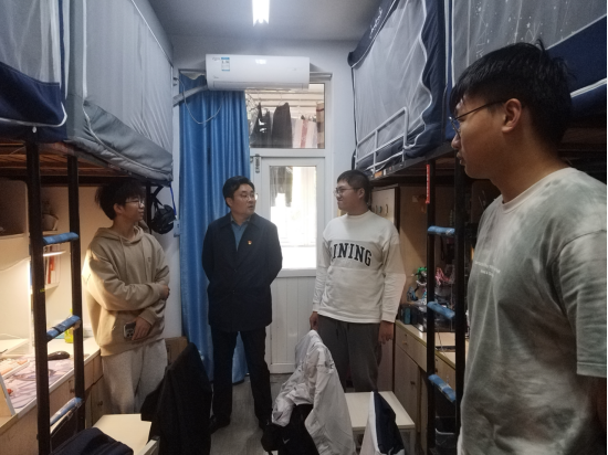 在走访过程中,周书记鼓励学生要不断提升专业学习、科研创新的综合素质和能力,同时要保持良好的生活习惯,注意宿舍卫生,培养健康的作息习惯;周书记还对环境卫生较好、宿舍氛围活跃的宿舍进行了表扬,对于存在问题的寝室提出整改建议,并给予了鼓励和关切。