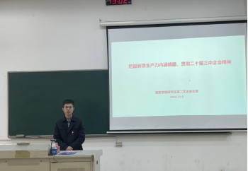 为深入学习党的二十届三中全会精神,提高学生党员对新质生产力的理解,国际经贸学院研究生第二党支部书记李贲老师于11月6日在德经楼106教室开展了一堂主题为“把握新质生产力内涵精髓,贯彻党的二十届三中全会精神”的专题党课。