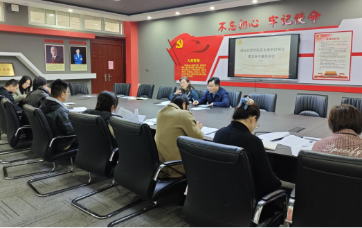 为进一步提升基层党务工作者能力素质,持续推动党建与事业发展深度融合,夯实以高质量党建引领高质量发展工作基础,11月18日下午,国际经贸学院在仙林校区德经楼206会议室召开党支部书记工作例会暨党务工作者培训。学院党委书记周亚芳、党委副书记周进进,学院组织员、兼职宣传员、兼职纪检员和各支部书记参加了会议。会议由组织员刘紫月主持。