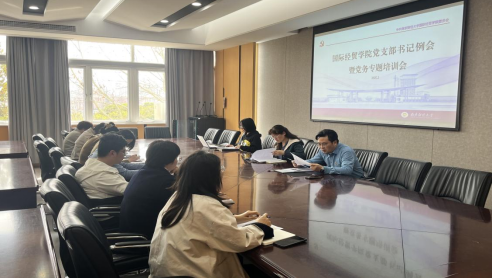 为加强学院基层党组织建设,提升党务工作者抓党建工作业务水平,2025年3月24日下午,国际经贸学院党支部书记例会暨党务工作者培训会在德经楼308会议室召开。学院党委书记周亚芳、党委副书记周进进,学院组织员、兼职宣传员、兼职纪检员和各支部书记参加了会议。会议由组织员刘紫月主持。