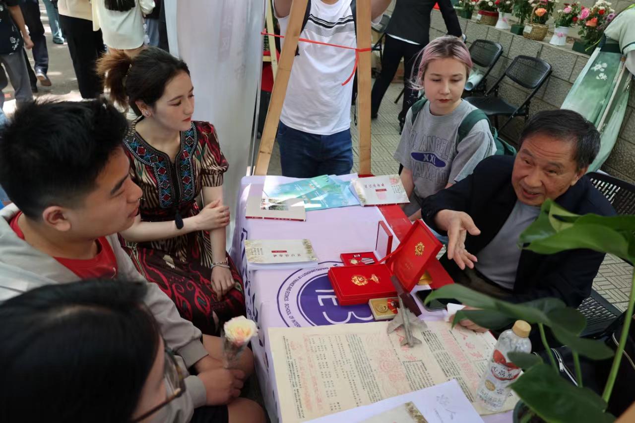 5月15日中午,在仙林校区中苑社区校“首届社区文化节活动”上,国际经贸学院“薪火相传担使命,青春奋进新社区”革命老党员进社区活动精彩亮相,抗美援越老战士、老党员刘树铭老师应邀与同学们进行了分享交流。