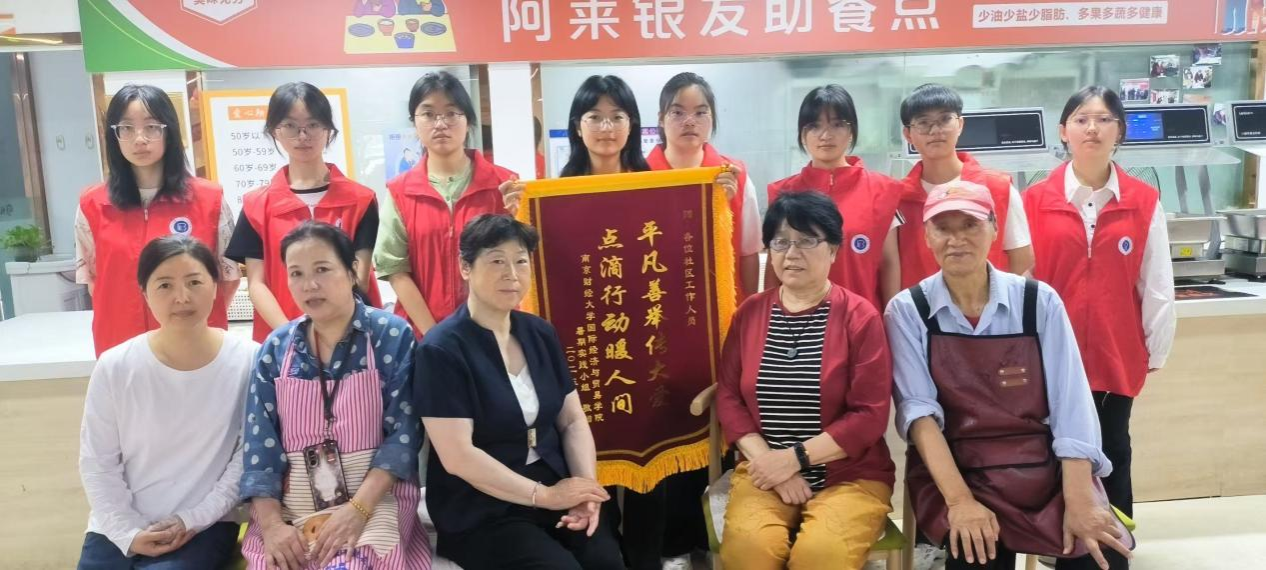 为响应推进劳动教育的号召,深入基层社区老人生活,传递社会正能量,2025年7月12日,南京财经大学国际经贸学院“一饭一心志愿队”走进南京悦心居家养老服务中心,走到社区老人的身边,意在把爱心传递到社区,将温情填满小小的食堂。