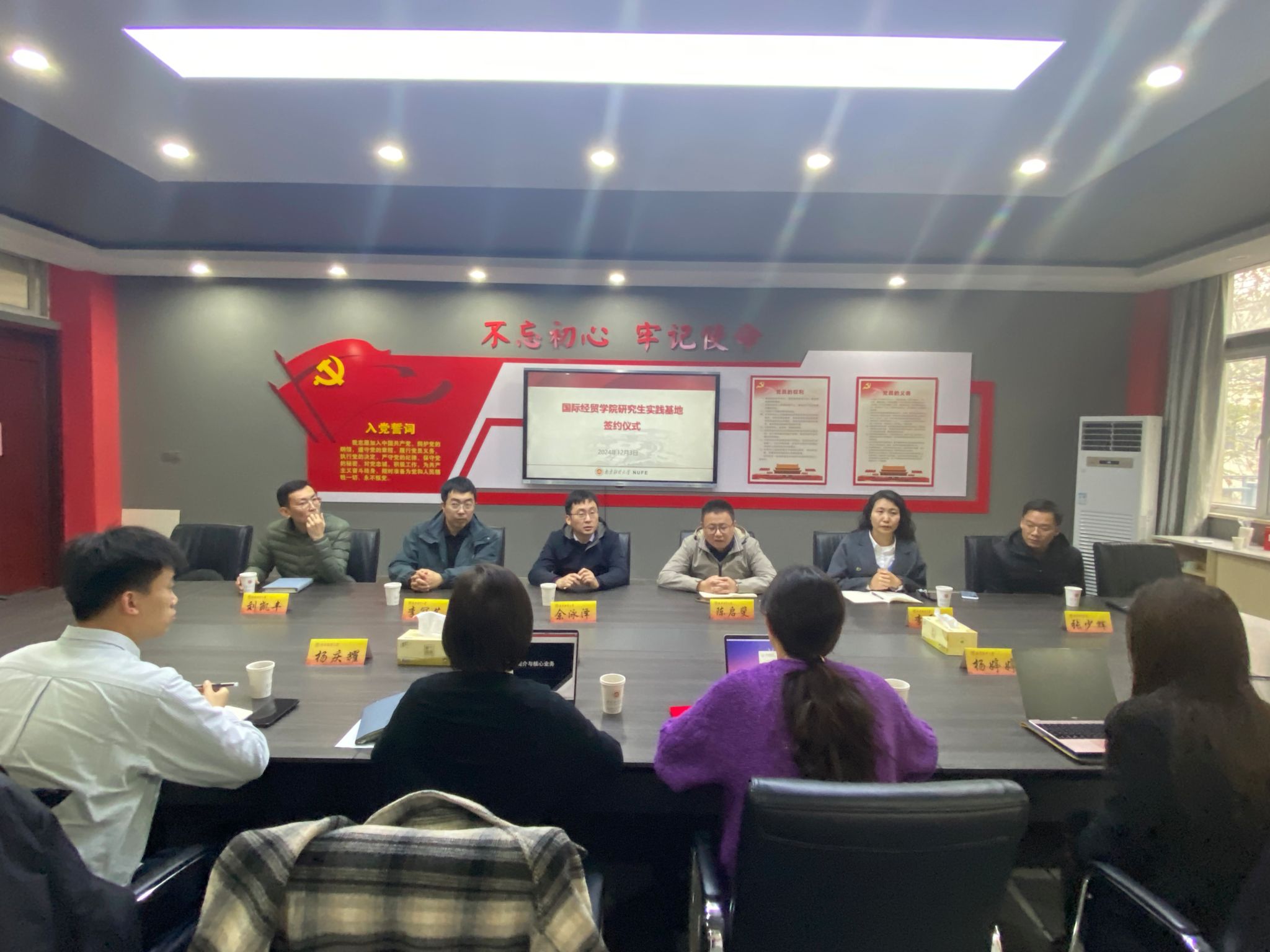 2024年12月3日下午,国际经贸学院与江苏未迟数字技术有限公司在德经楼206会议室举行了研究生实践基地签约仪式。余泳泽院长、陈启斐副院长、李冠艺副院长、学科骨干教师李平华、刘凯丰和张少辉出席了此次签约仪式。余泳泽院长对江苏未迟数字技术有限公司的四位领导莅临我院进行指导表示热烈欢迎和衷心感谢。陈启斐副院长向专家介绍了我院研究生实践基地建设的基本现状。